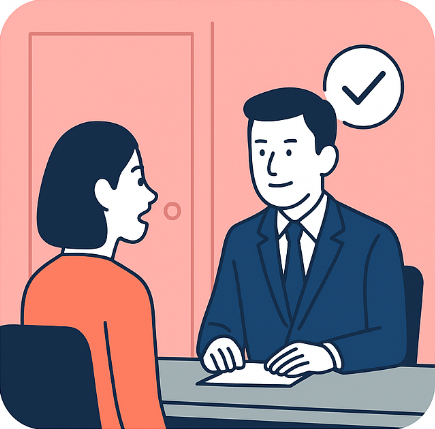 リハーサルレッスンでは、本番さながらに入室・挨拶・質問応答・退室までの流れを体験。緊張感のある模擬面接を繰り返すことで、本試験に安心して臨める力を養います。